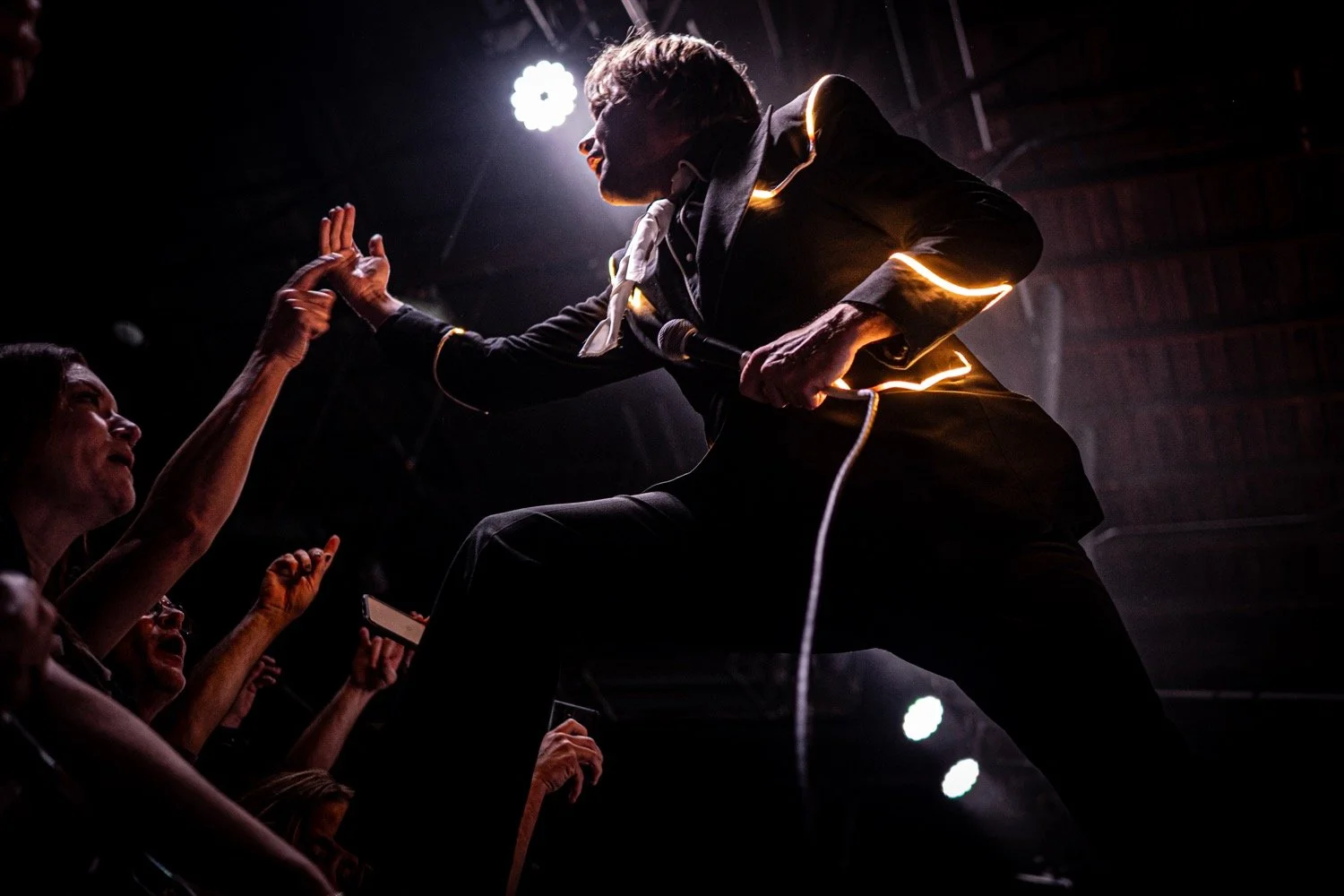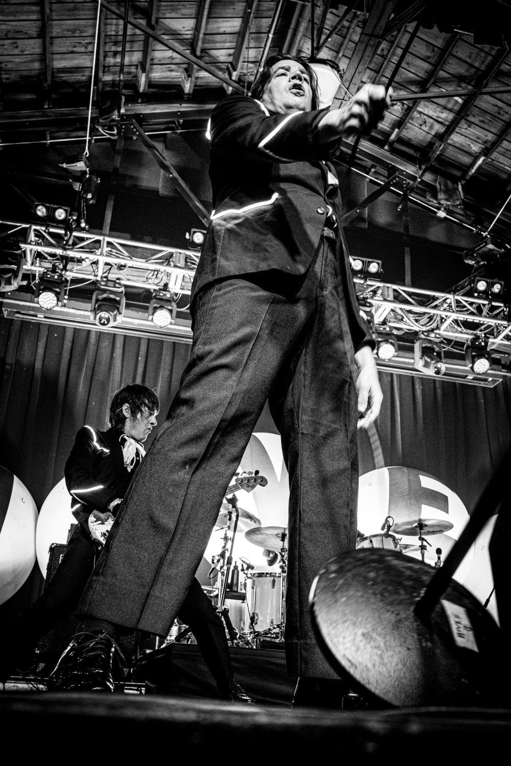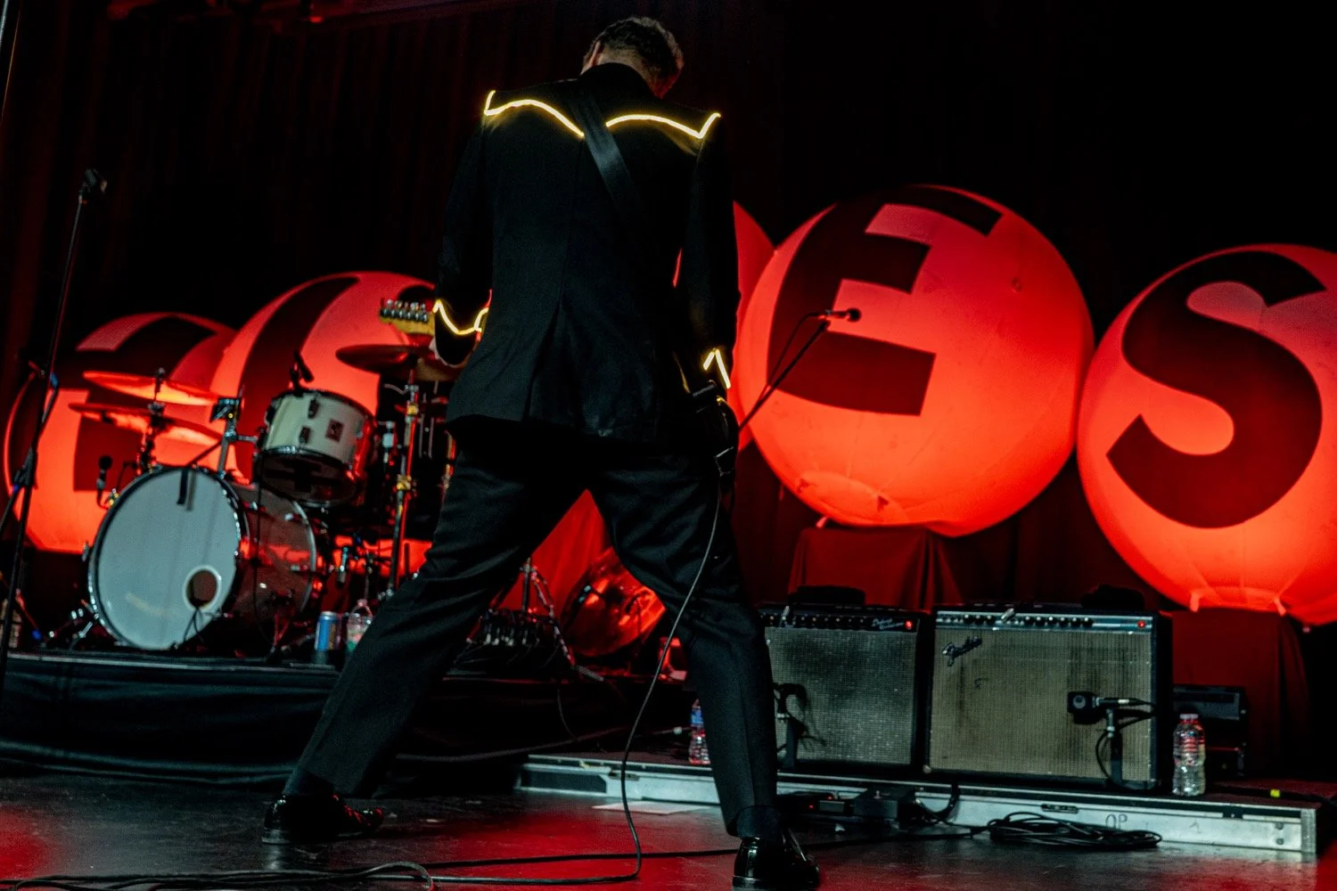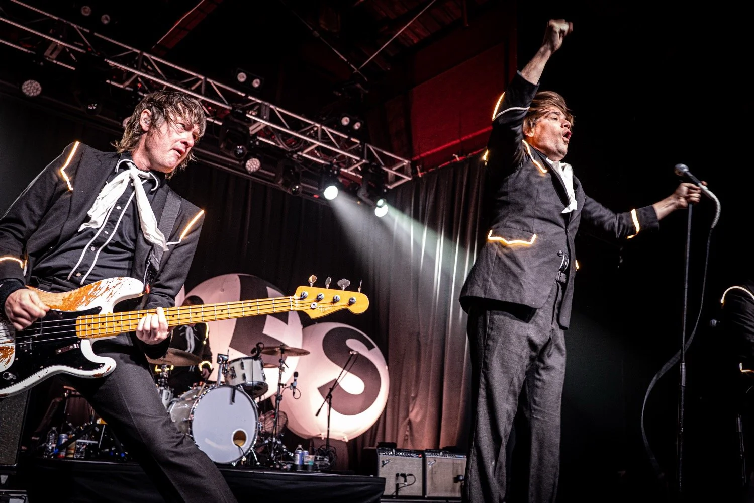 Built for stadiums and arenas, The Hives' performance translated nicely to the thousand-cap room, more than delivering on the potential of seeing world-class artistry in an intimate setting. Donning their usual black suits with glow-light piping, the group followed the example of frontman Pelle Almqvist, whose stage strutting, corded-mic tossing, and frequent pleas for more noise by waving his arms — requests that were fulfilled every time — provided consistently captivating visuals.