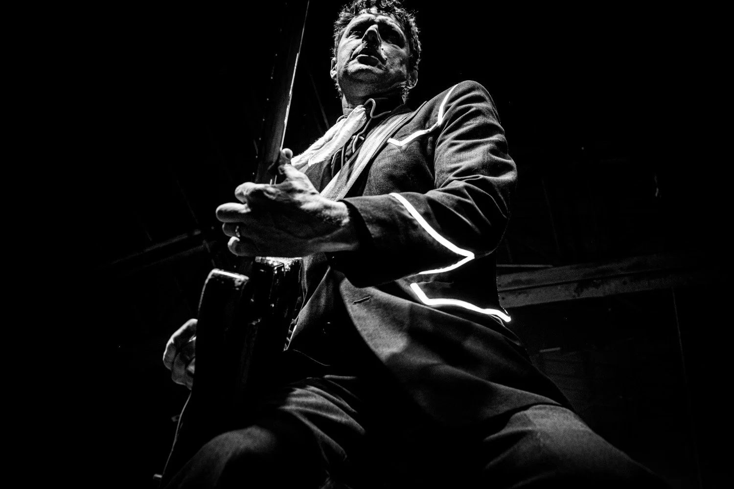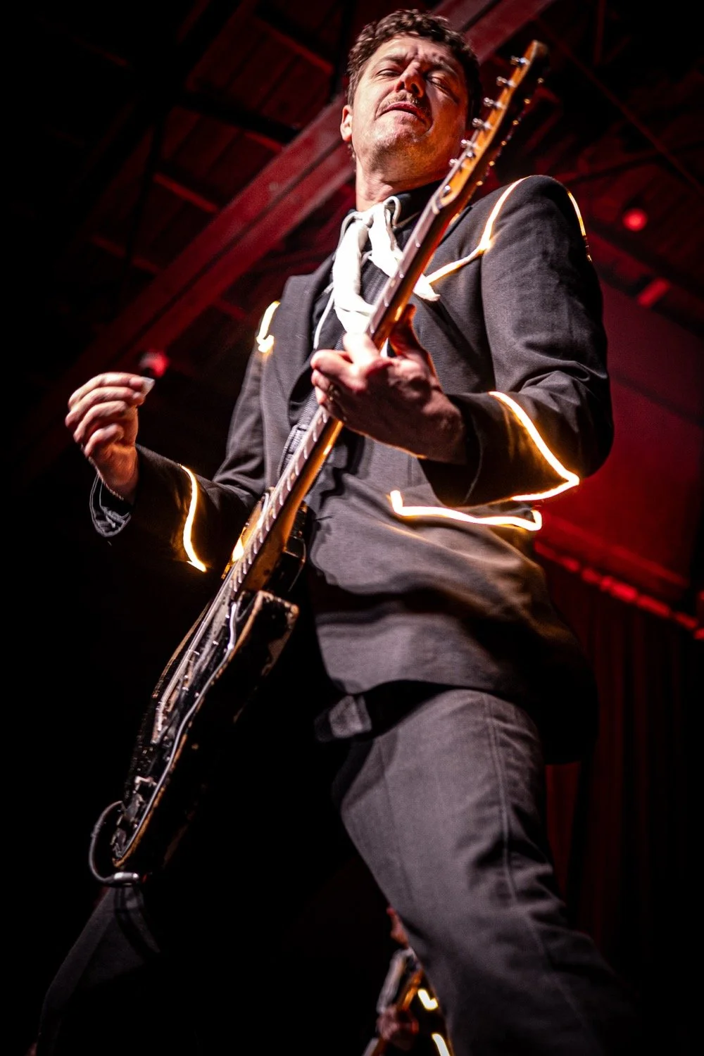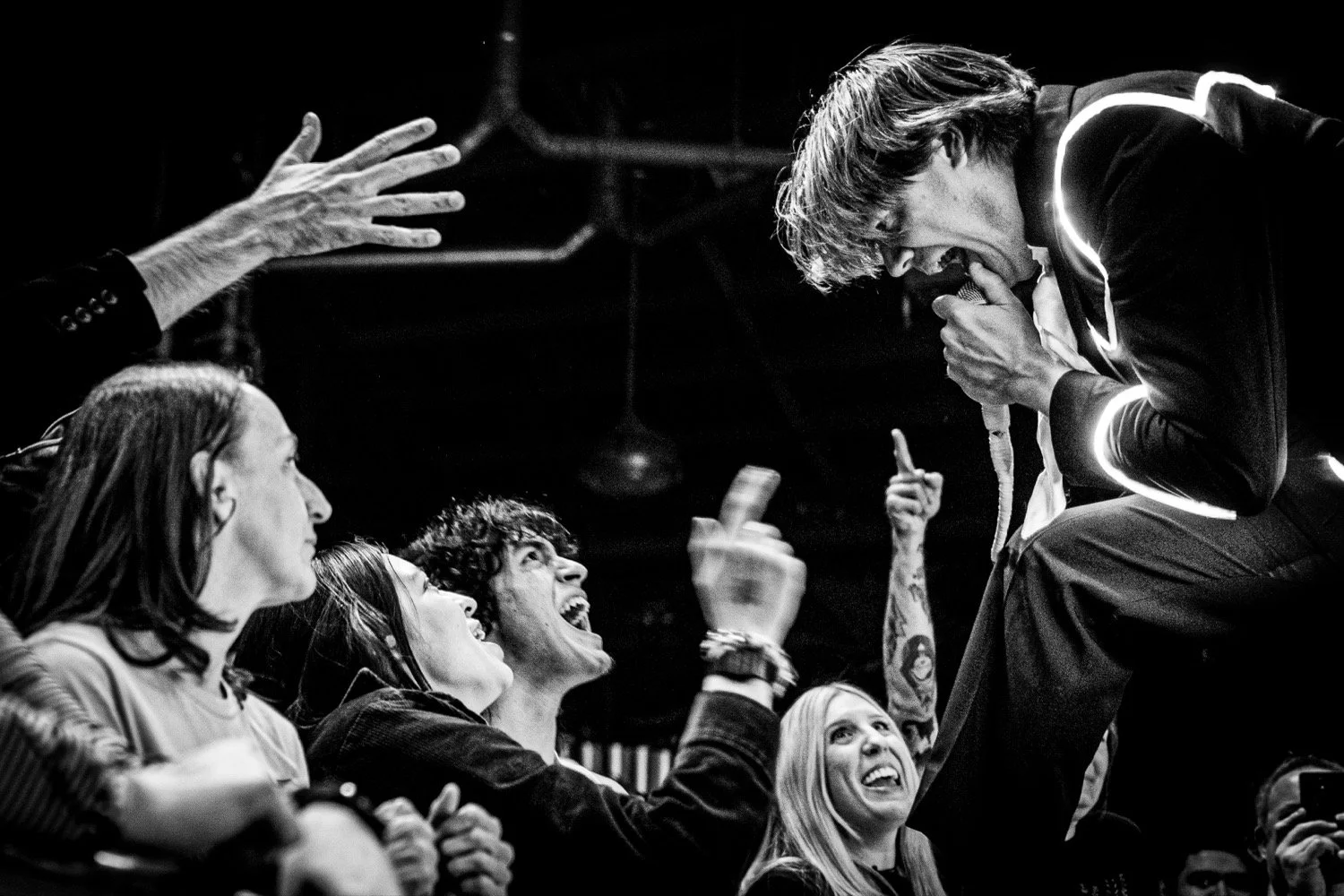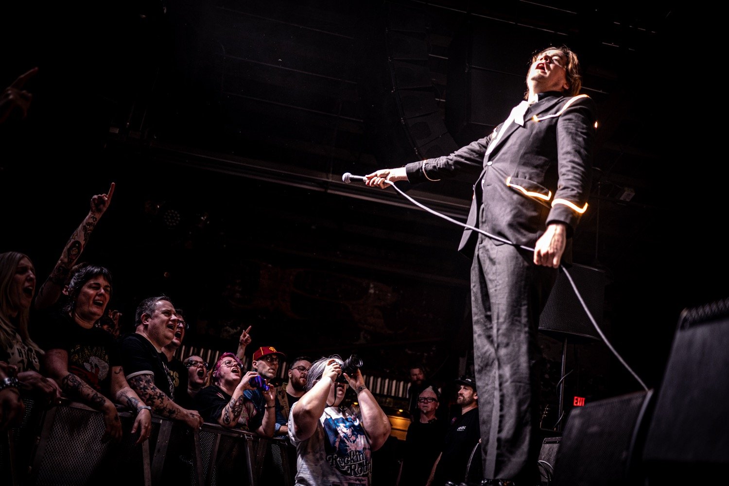 Built for stadiums and arenas, The Hives' performance translated nicely to the thousand-cap room, more than delivering on the potential of seeing world-class artistry in an intimate setting. Donning their usual black suits with glow-light piping, the group followed the example of frontman Pelle Almqvist, whose stage strutting, corded-mic tossing, and frequent pleas for more noise by waving his arms — requests that were fulfilled every time — provided consistently captivating visuals.